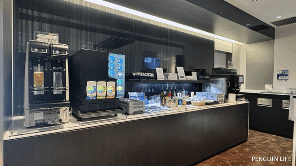 ドリンクカウンターは1ヶ所。ビールの銘柄は1種類、お酒のラインナップは他のANAラウンジと同じ。